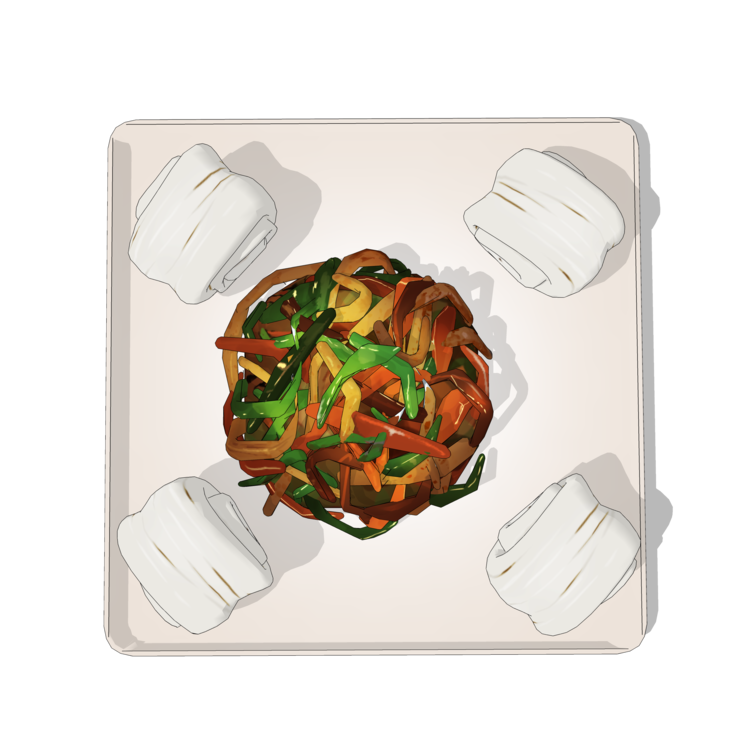 중식메뉴중 하나인 꽃빵세트 모델입니다. 4개의 꽃빵과 아삭한 야채볶음 모델로 구성되어 있습니다