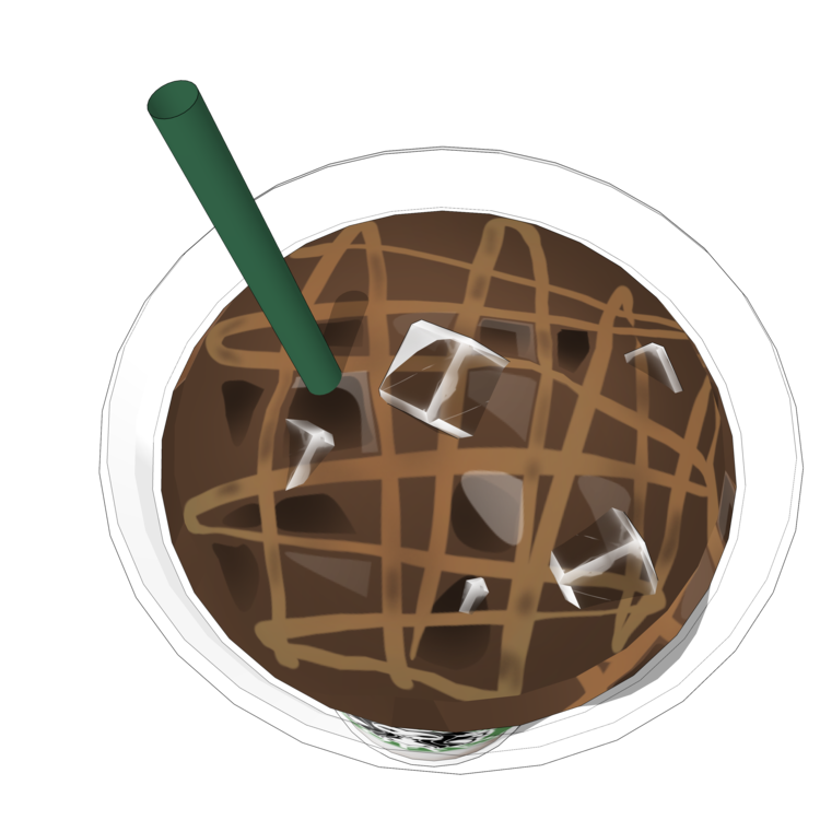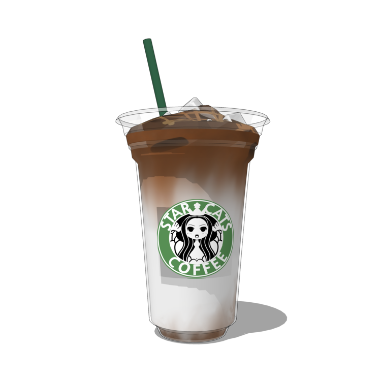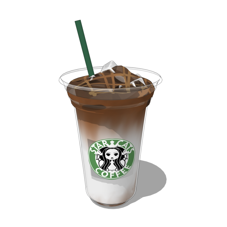 시원달콤한 아이스 카라멜 마끼아토 모델입니다. 테이크아웃잔에 담겨있습니다.