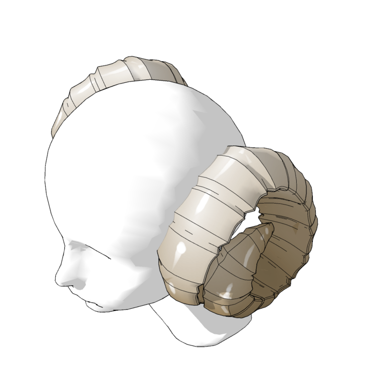 캐릭터헤드에 달수 있는 뿔장식입니다.둥글게 감긴 형태입니다