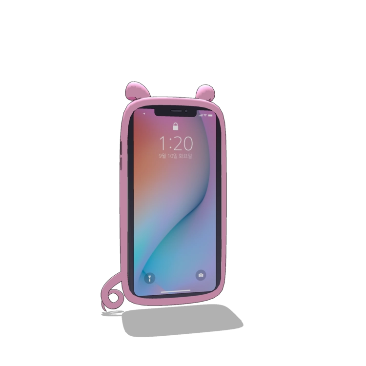 귀여운 돼지캐릭터 모양의 케이스입니다. 아이폰11프로와 세트로 구성되어 있습니다.